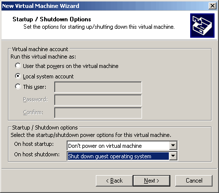 up the virtual machine, I chose to have the host "Shut down guest operating system" when