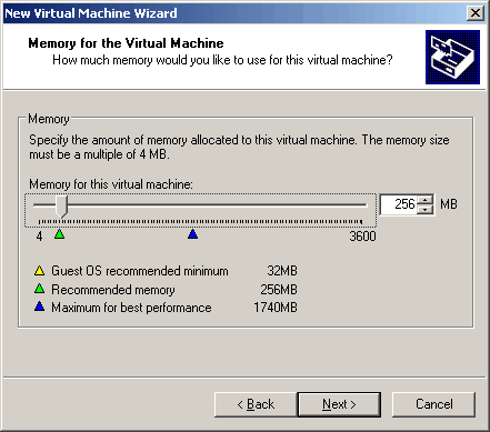 Choose the amount of memory that you want to allocate for the new virtual machine. I will go