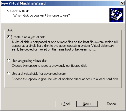 Create a new disk for this new virtual machine.