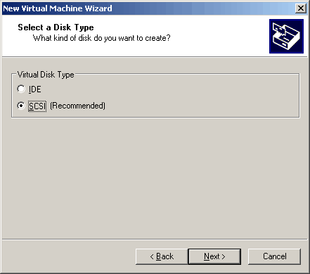 SCSI is recommended. They must mean virtual SCSI, right? Well, let's go with the recommendation