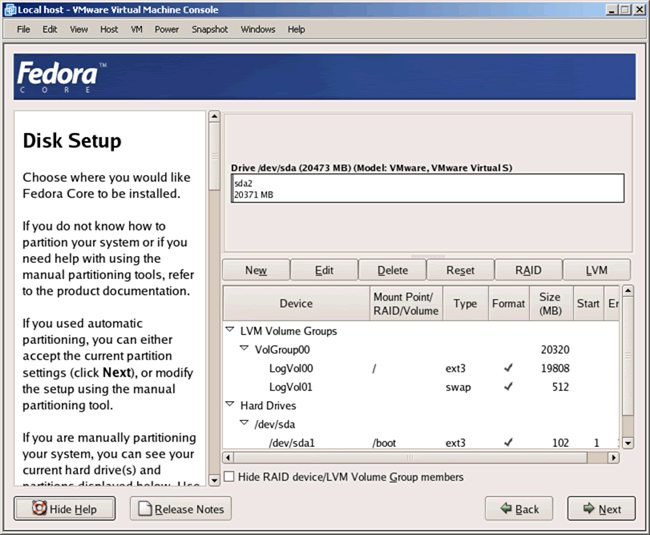Build The Virtual Machine [Optional] Now that we have laid the groundwork, let's get going with the actual steps. Remember that this section involves Vmware and should be considered optional for those of you not using the product. If you are not using VMware, proceed to "Install Fedora Core".