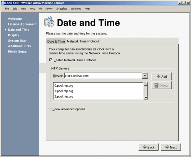 If you want to use NTP (recommended) do so and click Next to continue.