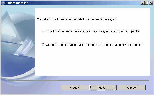 The default action is to install a maintenance pack. Take it and click Next