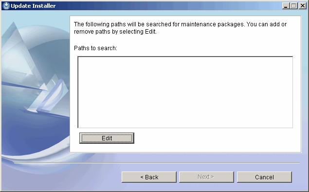 As we see, the installer cannot find any fix packs to install, so it needs help. We click