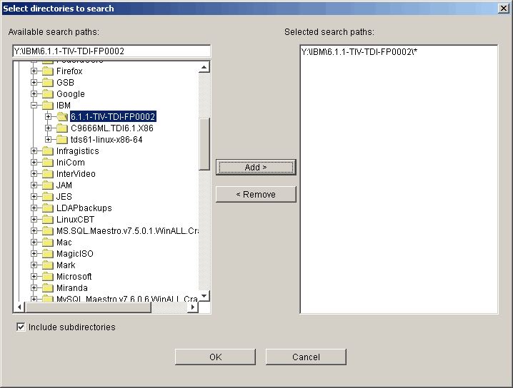 Drill down to the fix pack location and be sure to click the "Include subdirectories" check box