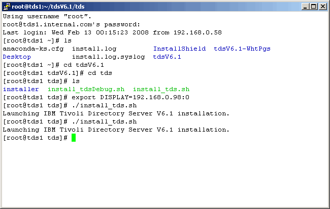 Background We came to installing Tivoli Directory Server (TDS) 6.1 on Redhat Enterprise Linux (RHEL) 5.1 out of necessity, as we were having a terrible time installing it on IBM's very own UNIX flavor called AIX. As we were waiting for IBM's help to resolve issues around the Java installer, we decided to not allow it to be a "show stopper" by temporarily using Linux. As previously stated, even using Linux was not easy, but is was easier than AIX. Assumptions / Requirements